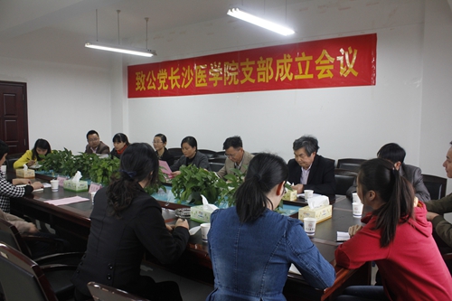 11月3日下午, 致公党长沙医学院支部成立会议在长沙医学院办公楼会议室召开。省委秘书长、省直工委主委刘良廷,省直工委办公室主任朱沈萍,原长沙医学院党委书记魏仁忠,长沙医学院纪委书记、组织人事处长周春花出席会议,致公党长沙医学院支部全体党员参加会议。