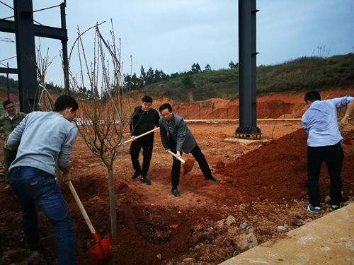 下午4点30分左右,在致公党郴州市筹委副主委李正清、北湖支部主委贺彬、北湖支部副主委暨长信集团总经理陈海龙的带领下,致公党北湖支部及长信集团义务植树志愿者30余人,迎着春风,踏着芬芳,一起来到石盖塘镇进行义务植树活动。一到植树现场,志愿者们就纷纷挥锹铲土、定点挖坑、放苗回填、浇水植树,场面异常火热。一眨眼的功夫,在大家的辛勤劳动下,100多棵樱花树便亭亭玉立在沃土上。虽然大家脚底全是泥土,手掌全是血泡,但眼前这一片新生命让大家感到充实与快乐。