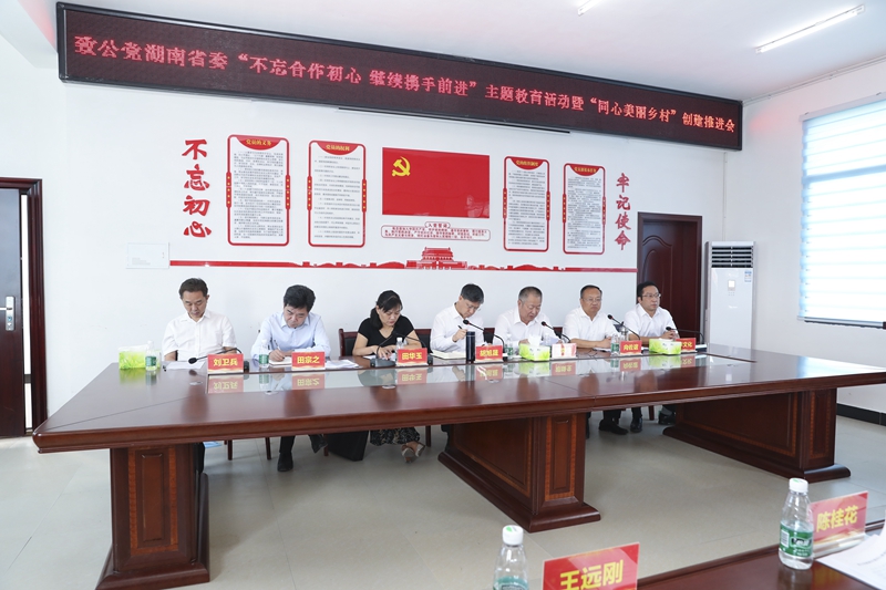 会上,致公党湖南省委秘书长、副巡视员田宗之总结了致公党省委开展“不忘合作初心 继续携手前进”主题教育活动情况,对下阶段如何开展主题教育活动进行了具体安排和部署。田宗之指出,在致公党省委持续扶贫联系近20年、中共湖南省委统战部已经挂牌的“省级同心乡村”双溪桥村召开主题教育推进会,就是要让大家真切感受红色文化、接受传统教育、体会多党合作的生动实践,本身就是一次深刻的主题教育活动,有利于加强对我国新型政党制度的宣传,有利于深入开展“不忘合作初心,继续携手前进”主题教育活动,有利于推动“同心美丽乡村”建设。