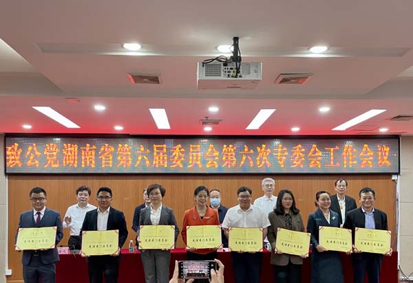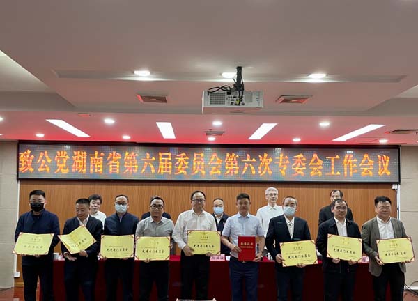 会议表彰了全省2021年度先进专门委员会。省委会体育委员会荣获“特别贡献奖”;省委会社会服务工作委员会、参政议政工作委员会、文化艺术委员会、科技与知识产权委员会、医卫委员会、麓商会、统战理论与党务委员会、书画委员会,长沙市委会参政议政委员会、株洲市委会参政议政工作委员会、湘潭市委会社会服务工作委员会、衡阳市委会老龄党员联谊会、岳阳市委会法律委员会、张家界市委会宣传工作委员会、常德市委会宣传工作委员会、郴州市委会(筹)参政议政工作委员会等16个专委会荣获致公党湖南省委会2021年度“先进专门委员会”称号。