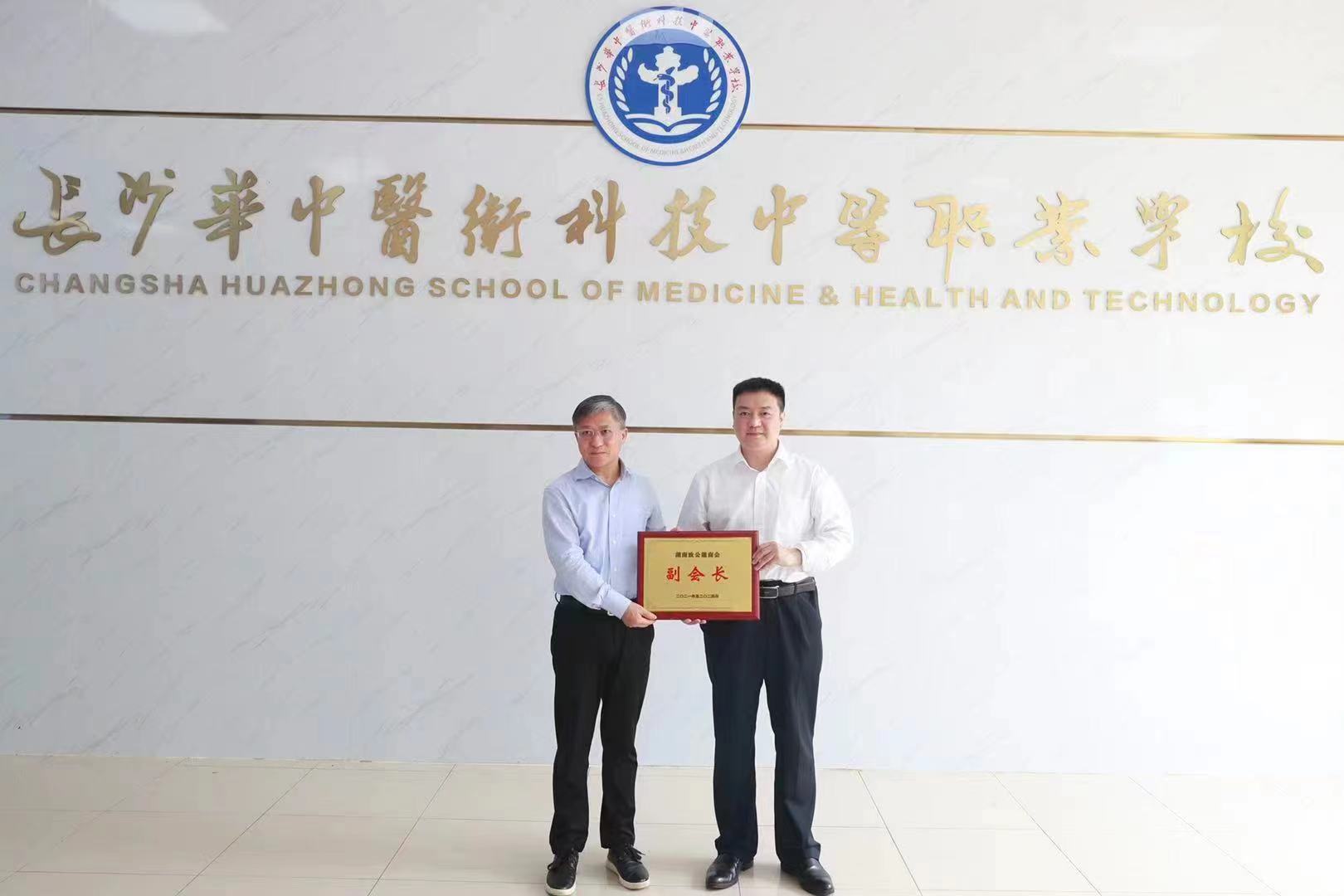胡旭晟一行实地走访学校中药、药剂专业实训室、护理、康复技术专业实训室,察看了即将建成的湖南联通数字科技展厅,青岛海尔物联网专业实训室效果图展示。走访结束后,胡旭晟主委为陈强颁发了致公党麓商会副会长牌匾。