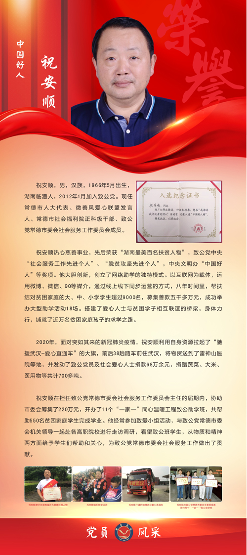 为进一步激励广大党员争先创优、攻坚克难、奋力拼博、乐观进取的精神风貌,为彰显致公担当,奋力实现“三高四新”战略定位和使命任务,省委会将在微信公众号和网站设置“党员风采”专栏,分批集中展示受表彰的党员,让展示的过程成为向先进典型学习的过程,努力在全省形成学习先进、崇尚先进、争当先进的良好风气。