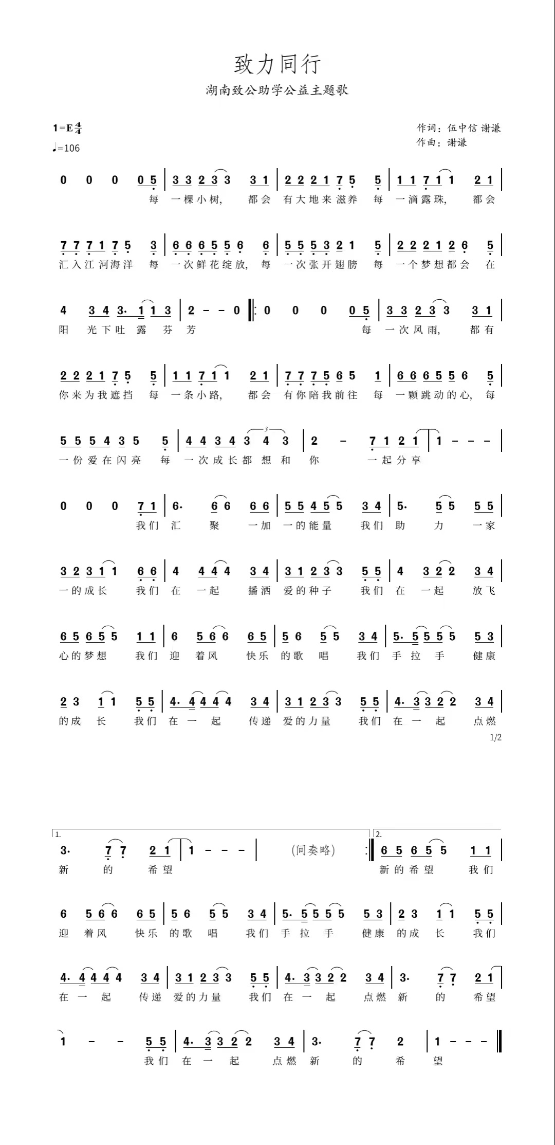 由致公党员伍中信、谢谦作词作曲,“一家一”致公班学生彭娜娜领唱,湖南致公助学理事会、云创文化宣传出品的湖南致公助学主题歌曲《致力同行》今日上线,全球150多个音乐平台同时发布。