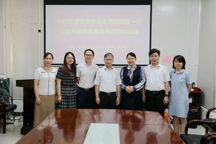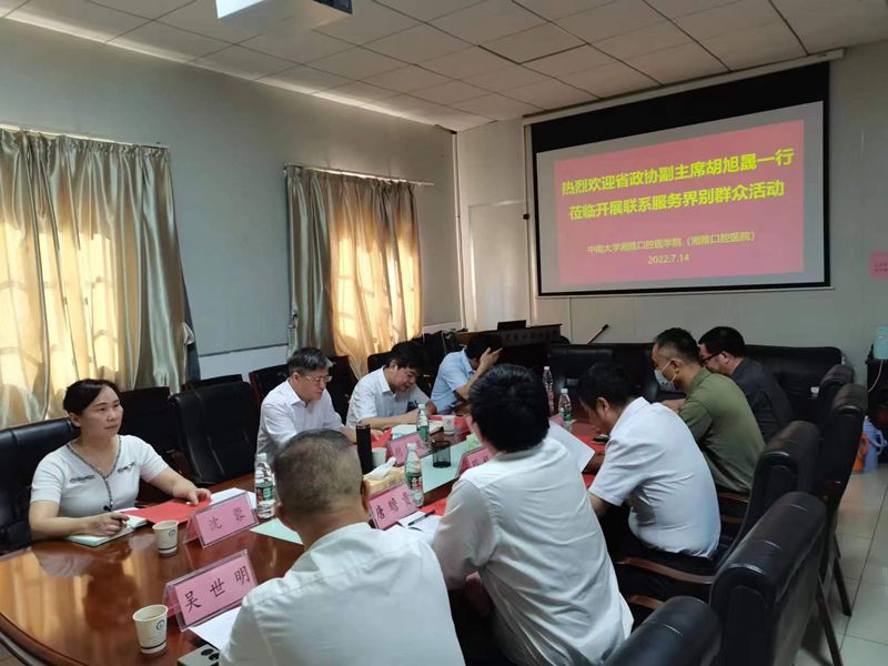 7月14日上午, 省政协副主席、致公党湖南省委会主委胡旭晟开展政协委员走访联系服务的党员----中南大学湘雅口腔医(学)院副教授、致公党员王月红,并在中南大学湘雅口腔医(学)院调研。