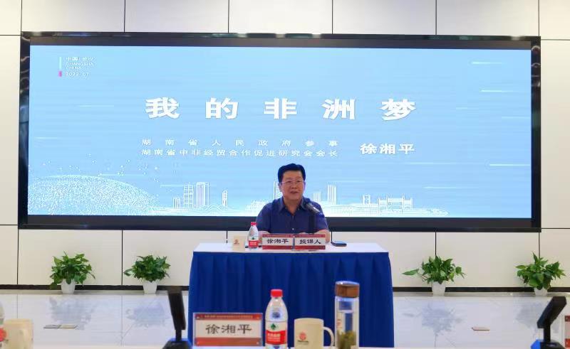 活动中,省政府参事室参事、中非研究会会长徐湘平作了《我的非洲梦》主题演讲,他声情并茂的讲述了湖南在中非自贸合作中的重要地位和非洲广阔的发展前景。其他领导宣介了湖南自贸区人才政策。最后,海归人才代表们参观了中非经贸博览会常设展馆。