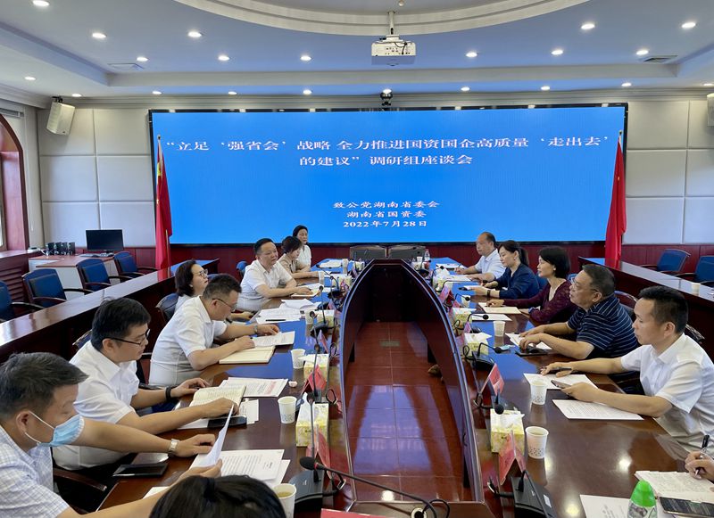 7月28日,致公党湖南省委会副主委、省体育局局长罗双全率课题组一行,赴省国资委就“立足‘强省会’战略全力推进国资国企高质量‘走出去’的建议”课题开展调研。省国资委党委副书记、副主任杨晓喻出席座谈会。省国资委党委统战部部长曹菁主持会议。省国资委党委办、党委统战部、规划发展处、政策研究与法规处、科技创新处、对外合作处负责同志,致公党省委会参政议政处负责同志及专家尹筑嘉、杨春生、贺飞跃、陈琦参加会议。