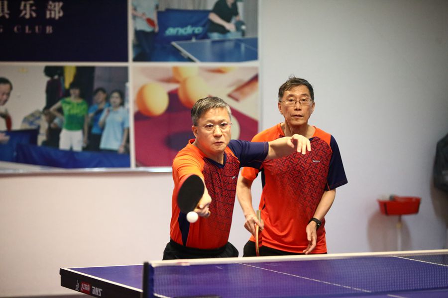 “八尺绿台闪弧影,两阵方圆展神兵”。乒乓球在空中来回抛出优美的弧线,博得了一阵又一阵的喝彩声。现场的气氛十分的活跃,参赛选手们都以饱满的热情和高度的积极性,全身心的投入到此次比赛中,充分发挥“敢打敢拼”的进取精神。炎炎烈日,阻挡不住内心的激情澎湃;摩拳擦掌,彰显致公党员的英雄本色。球场上,运动健儿们尽情的挥洒着自己独特的风采,那一道道飘逸的身影,一招招奔放的拼杀,肆无忌惮的狂傲与自豪,在这一刻,全都淋漓尽致的流露出来,场边的观众们也不断为他们呐喊助威,整场比赛在激情又不失愉悦的气氛中进行。主委们也身先士卒,化身运动健将,在球场上与党员们一起奋力拼博,场下的啦啦队也为他们加油打气,欢呼阵阵。