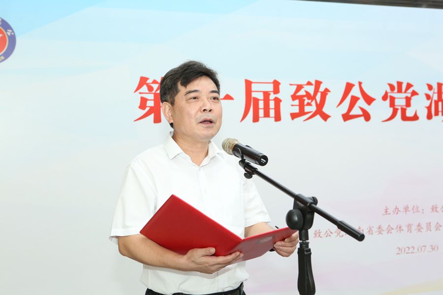 何劲松代表承办方对致公党员乒乓球爱好者表示欢迎,祝愿大家赛出成绩,赛出风格。在运动员代表和裁判员代表庄严宣誓后,胡旭晟宣布“第一届致公党湖南省乒乓球赛”隆重开幕。
