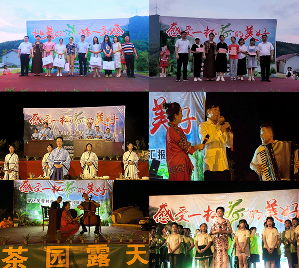 致公党常德市委会爱心妈妈们在该村开展了为期5天的茶礼文化夏令营活动中,由高级茶艺师、礼仪培训师组成的团队对芙蓉村42名中小学生开展了国学茶礼培训。闭营仪式上,老师、营员、村民为大家奉献了《感受一杯茶的美好》为主题的精彩演出,表演了茶歌、茶山舞蹈、经典朗诵《茶经》以及芙蓉天尖黑茶茶艺表演等节目。特别是师大基层委员会举办的茶山露天音乐会,更是给乡村带来了一场音乐盛宴。