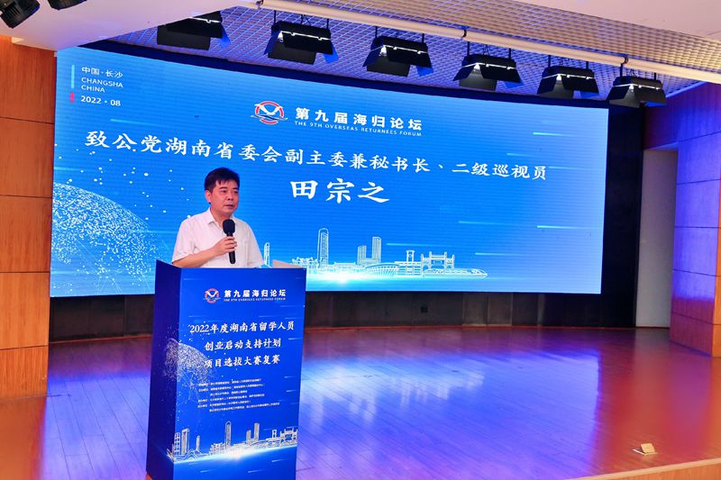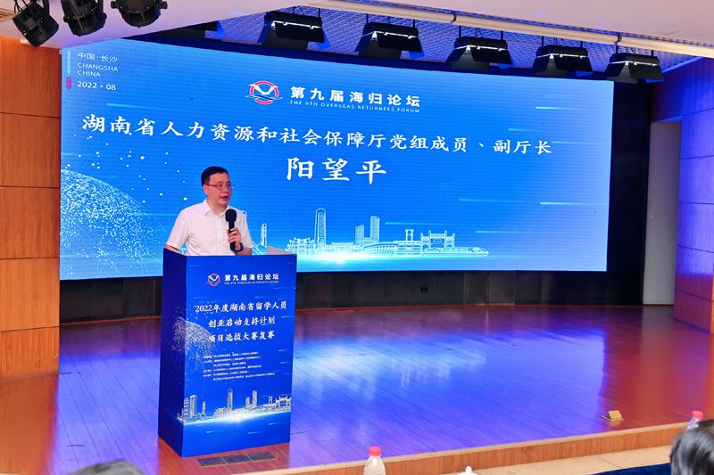8月26日,第九届海归论坛——2022湖南省留学人员创业启动支持计划项目选拔大赛复赛在长沙高新区管委会举行,省人社厅党组成员、副厅长阳望平,致公党湖南省委会副主委兼秘书长、机关二级巡视员田宗之出席并讲话。