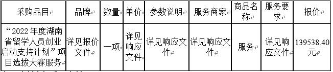 中国致公党湖南省委员会“2022年度湖南省留学人员创业启动支持计划”项目选拔大赛服务于2021年09月08日结束,现将成交结果公告如下: