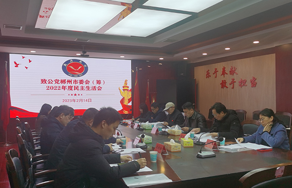 2月14日,致公党郴州市委会(筹)召开2022年度领导班子民主生活会。致公党湖南省委会副主委兼秘书长、二级巡视员田宗之,中共郴州市委统战部副部长何庚文出席会议。市政协副主席、致公党郴州市委会(筹)主委、市民政局局长李志珍主持会议。