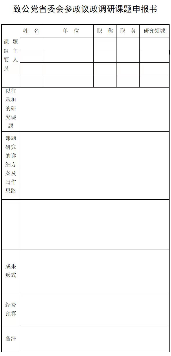 2.致公党省委会参政议政调研课题申报书