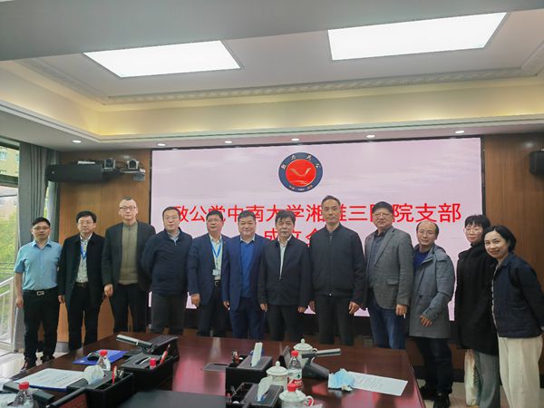 2023年4月6日,致公党中南大学湘雅三医院支部成立会议在湘雅三医院召开。省委会副主委兼秘书长、机关二级巡视员、省直工委主委田宗之,省直工委常务副主委、中南大学委员会主委,中南大学建筑与艺术学院院长石磊出席会议。中南大学统战部副部长李燕峰,中南大学湘雅三医院党委副书记杨飞龙到会祝贺。