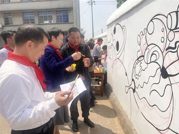 活动最后,出席活动的领导、志愿者和学生一起为墙绘开笔。