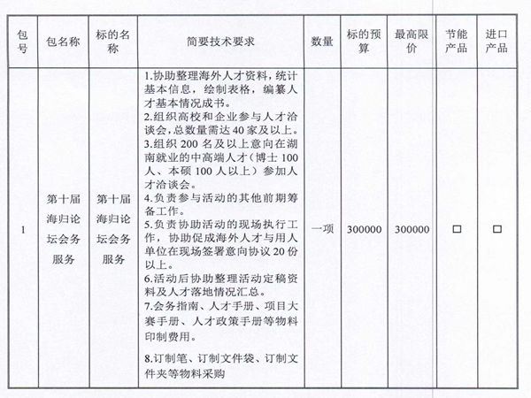 1、采购项目名称:中国致公党湖南省委员会第十届海归论坛会务服务项目