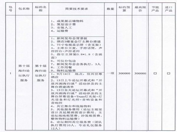 1、采购项目名称:中国致公党湖南省委员会第十届海归论坛执行服务项目