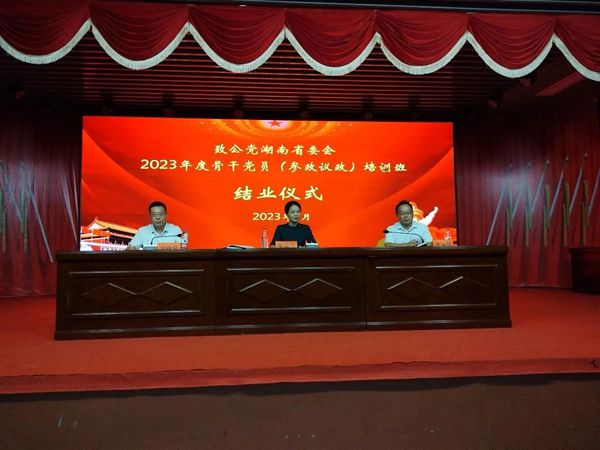 罗双全作总结讲话,她认为,此次骨干党员培训班以参政议政业务培训为主要内容,紧扣当下正在开展的“凝心聚魂强根基、团结奋进新征程”主题教育和省委统战部“五学两助”活动,紧紧围绕参政议政履职主线,主题鲜明、内容丰富、形式多样,取得了较好的学习效果。她要求,一要深刻认识到参政议政在党派工作中具有举足轻重的地位。参政议政是民主党派的生命线,是民主党派存在的价值和意义,是民主党派全部工作的重中之重。二要准确把握省委会参政议政工作的重点方向。要紧跟时政前沿;要聚焦“开放兴湘”;要保持侨海特色。三要进一步充实完善参政议政工作机制平台建设。充分利用好已有的参政议政平台和渠道;发挥好专委会的优势和作用;建设好开放兴湘研究院。四要找准抓手提升议政建言的质量与实效。从强化调查研究基本功上下功夫;从参政议政能力建设上下功夫;从加强参政议政队伍建设上下功夫。致公党省级以上人大代表、政协委员,部分省委会委员、专委会主任和各市级组织后备干部等50余名骨干党员参加培训。