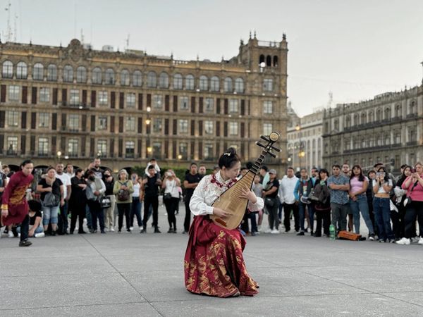 卢雨薇,毕业于中央音乐学院,这次作为文化使者全程参与了北美洲和南美洲团组的活动。她与其他来自北京舞蹈学院及多家非遗传承机构中遴选出的二十余位文化使者一道,从旧金山出发一路向南,在美国、墨西哥、秘鲁三国举办了文艺演出、图片展览、文化庙会、旅游推介等活动近30场。其中墨西哥城、利马等著名国际都市,都是首次迎来“欢乐春节”活动。