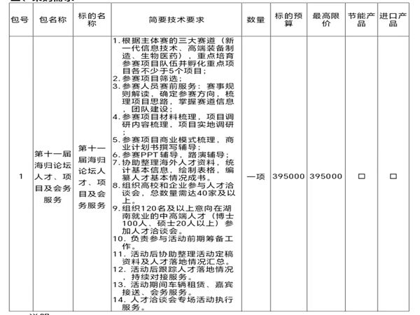 1、采购项目名称:中国致公党湖南省委员会第十一届海归论坛人才、项目及会务服务项目