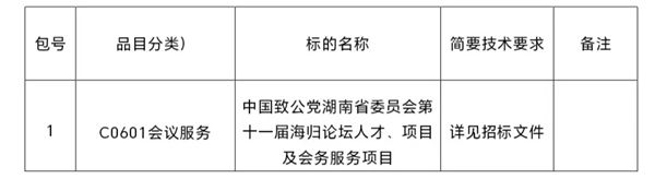 采购项目名称:中国致公党湖南省委员会第十一届海归论坛人才、项目及会务服务项目