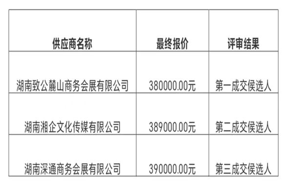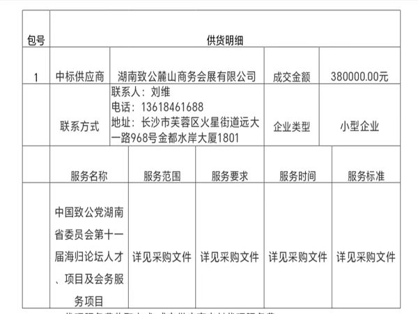 中国致公党湖南省委员会第十一届海归论坛人才、项目及会务服务项目评审工作于2024年6月21日结束,现将成交结果公告如下: