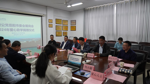 11月1日下午,致公党岳阳市委会麓商会在湖南理工学院举办爱心助学捐赠仪式,岳阳市政协副主席、致公党岳阳市委会主委李文,致公党市委会专职副主委谢模满出席活动,湖南理工学院教育基金会理事长汤福球、副理事长陈超文,物电学院党委书记周畅、副书记石红芳、学工办主任何小娅,致公党岳阳市委会麓商会爱心企业家参加活动。