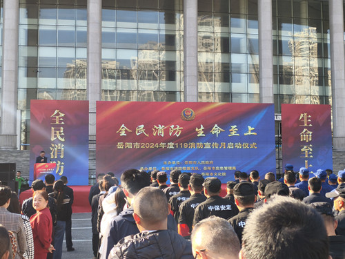 11月7日上午9点,岳阳市2024年消防宣传月启动仪式在岳阳市会展中心隆重举行,致公党省血防所总支组织党员参加。