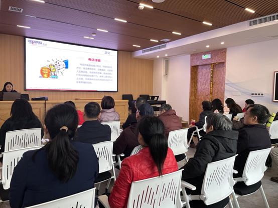 来自长沙银行洋湖支行的专业防诈骗宣传志愿者通过图文并茂的PPT演示和真实案例,详细讲解了各种诈骗手段和防范要诀。互动环节中,老人们踊跃发言,现场气氛热烈非凡,有效增强了老人们的防骗知识储备与应对技能。