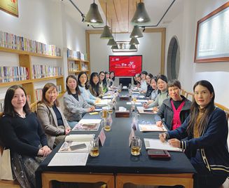 活动伊始,致公党员、忘不了集团董事长刘佳玟对姐妹们的到来表示热烈欢迎,并带领大家参观了忘不了博物馆。她深情回顾了忘不了集团40年的发展历程,从传统服饰的匠心传承到现代智能制造的创新突破,让大家在历史与科技的碰撞中感受服饰文化的魅力与变迁。随后,在三不忘书屋的茶香中,省市妇委会的委员代表们围坐一堂,围绕“服饰文化传承与女性创新发展”展开了一场多维度的对话。思想的火花在交流中碰撞,智慧的光芒在分享中闪耀。