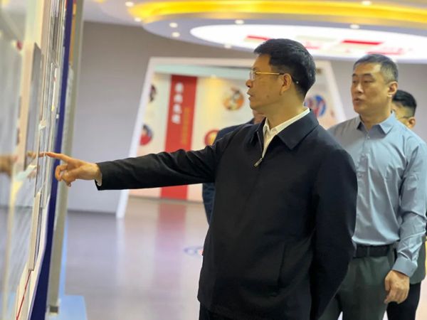 黄锋一行来到共识教育展厅,在每一张展板前都驻足观看,细致考察了现有设施与展陈内容。他充分肯定了基地开展以来取得的良好成效。