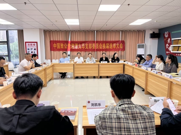 4月27日下午,致公党湘潭市九华支部召开党员大会,顺利完成支部委员会换届选举工作。致公党湘潭市委会专职副主委王玉芬、中共雨湖区委统战部常务副部长杨柳等出席会议